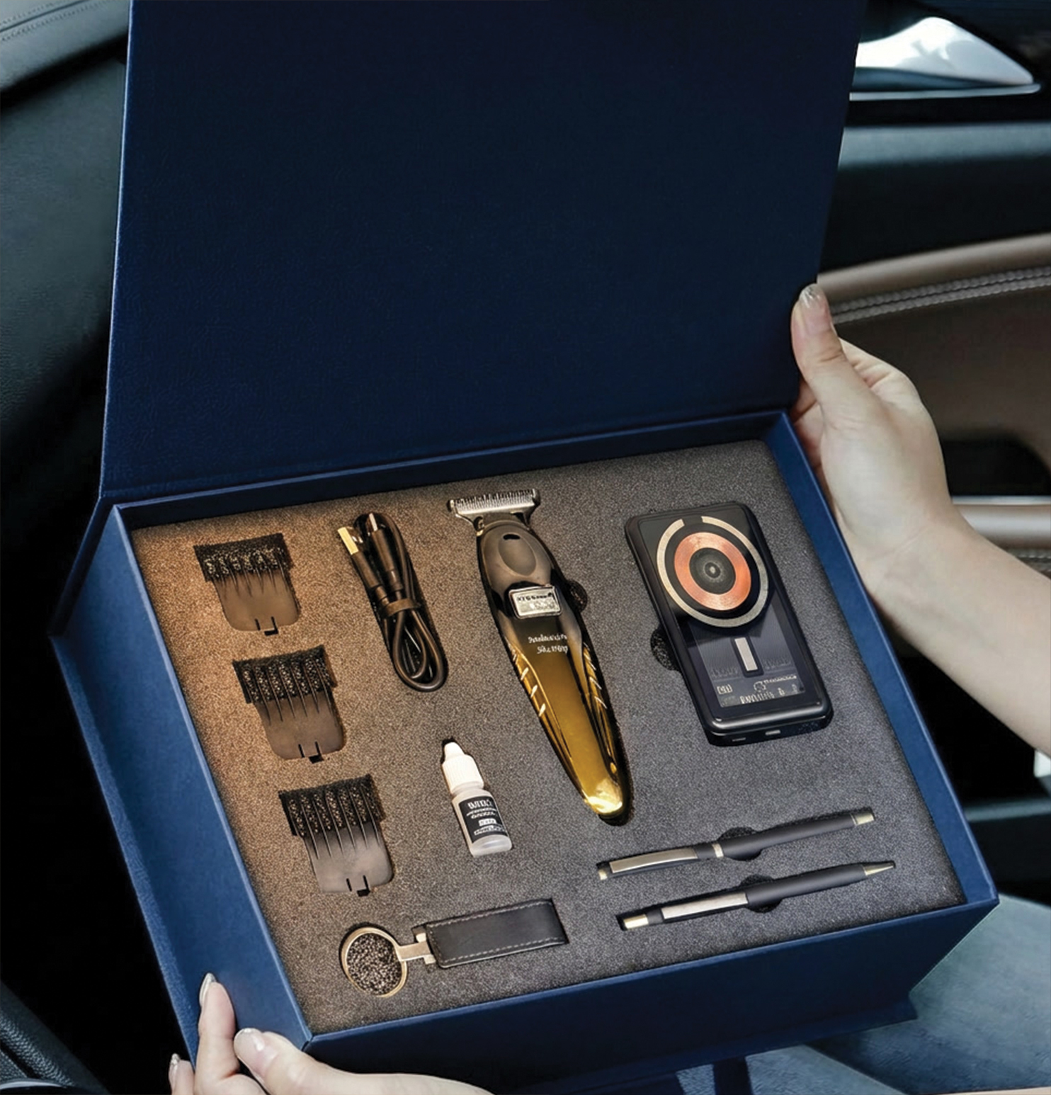شامل : پاوربانک 10000 میلی آمپر ، ریش تراش GEEMI ، فلش مموری چرمی ست خودکار و روانویس، به همراه فوم روکش دار وجعبه نفیس کادویی